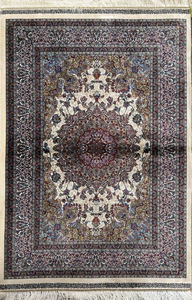 Silk Effect Natural Silk Fringe Rug (1m x 1.5m)